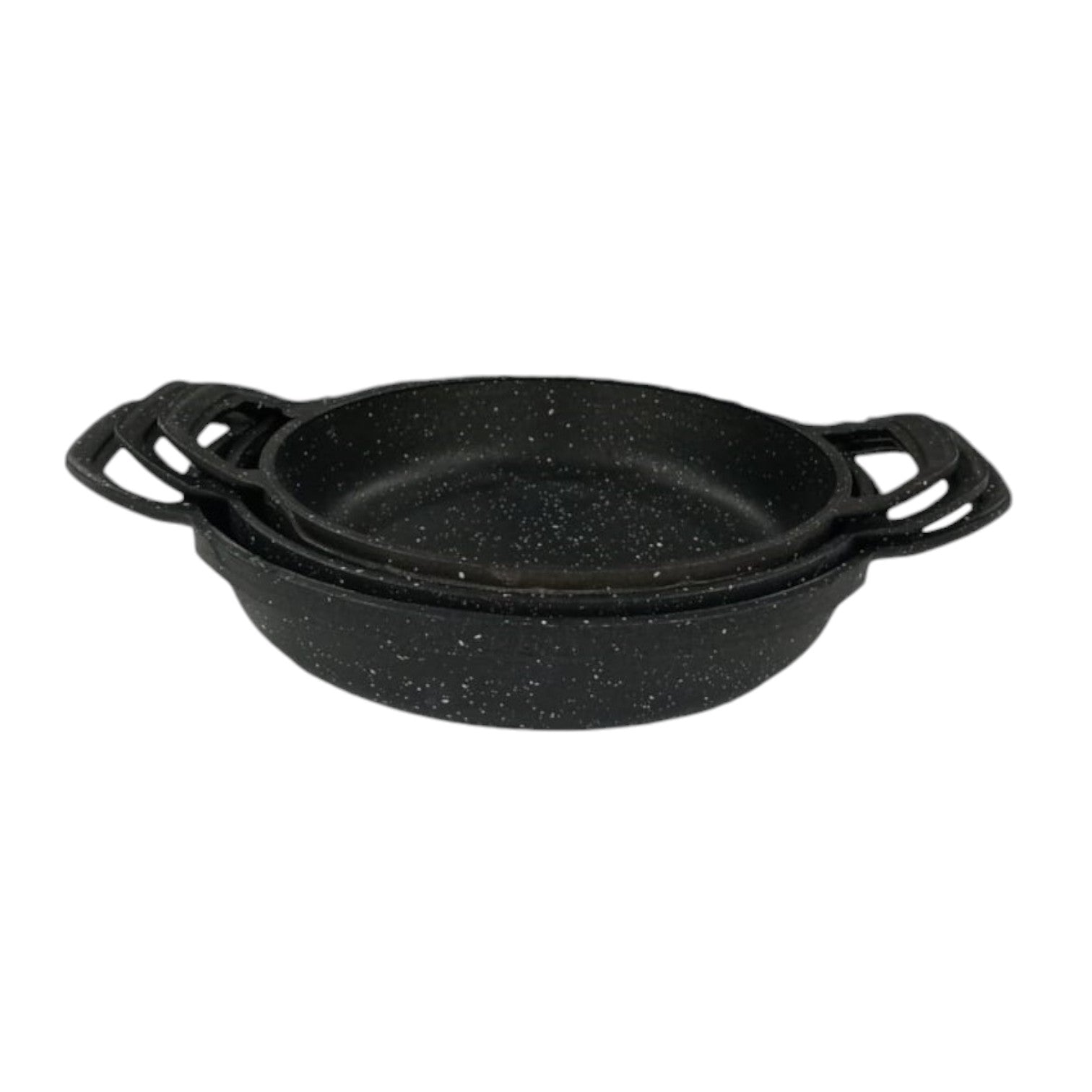 Unlock the secret to perfect omelets with our 3-Piece Granite Omelet Pan Set, expertly designed for culinary enthusiasts. This set includes three versatile pans in varying sizes, allowing you to create delicious, fluffy omelets, sauté vegetables, or cook up your favorite breakfast dishes with ease.